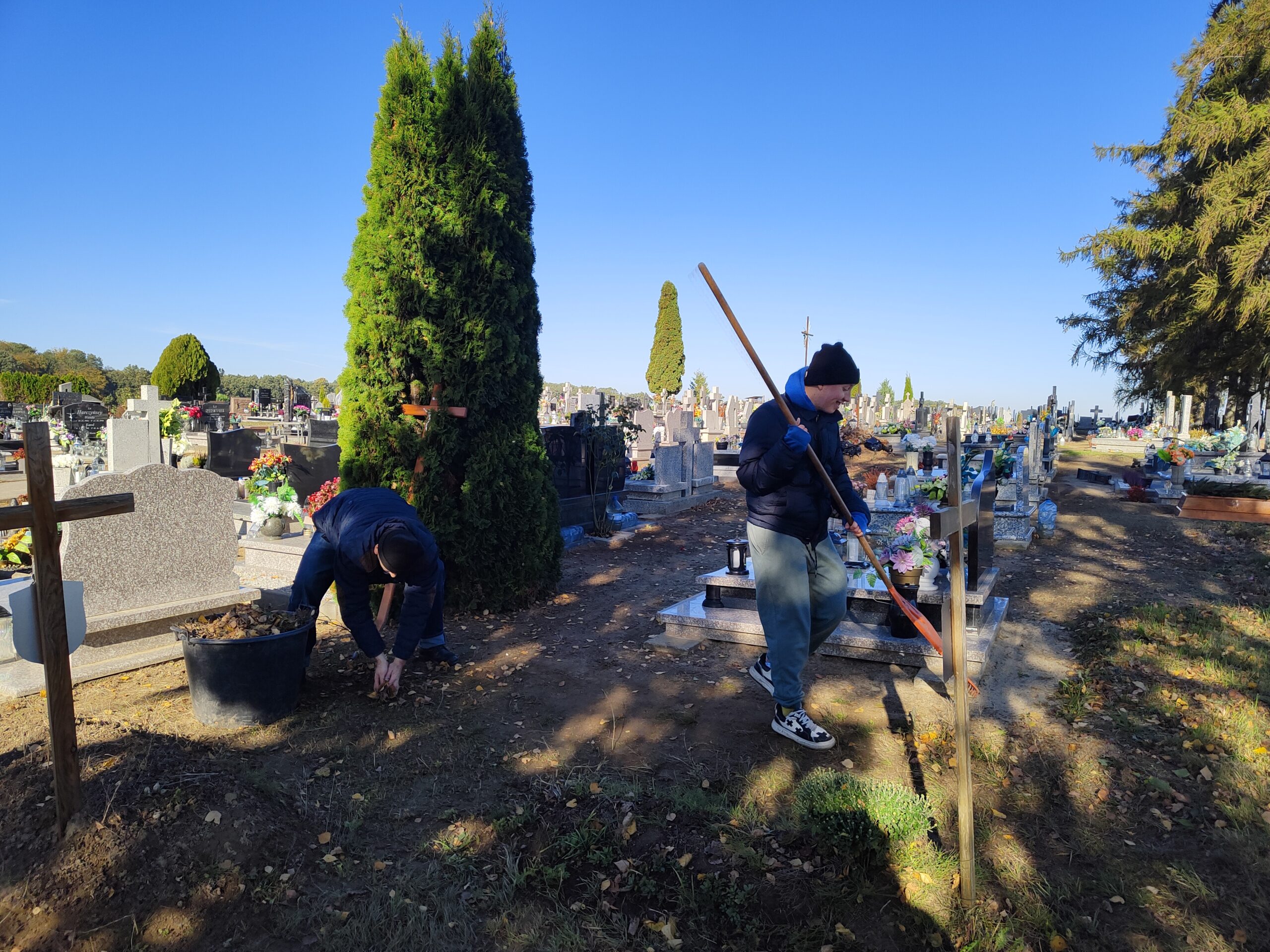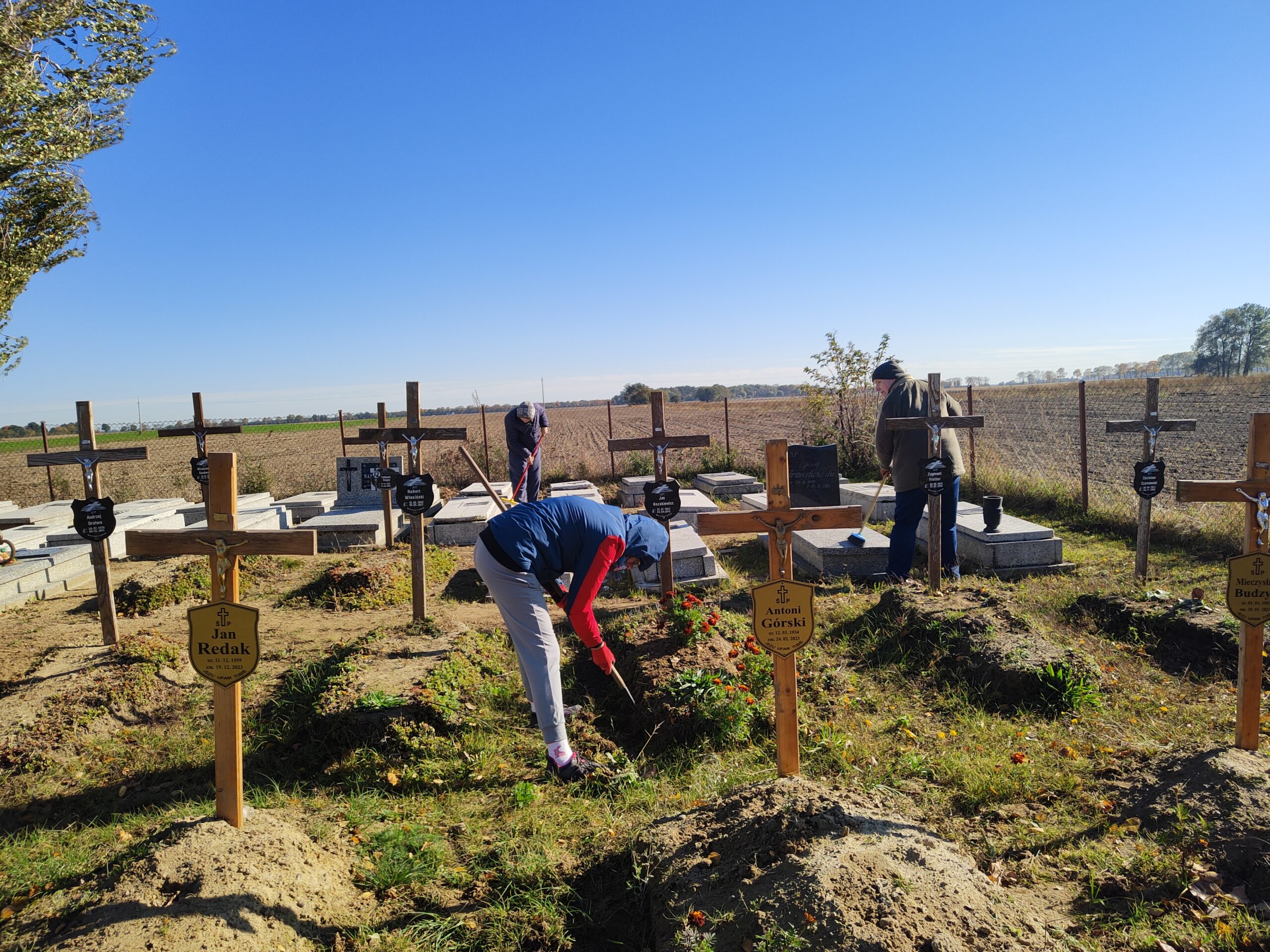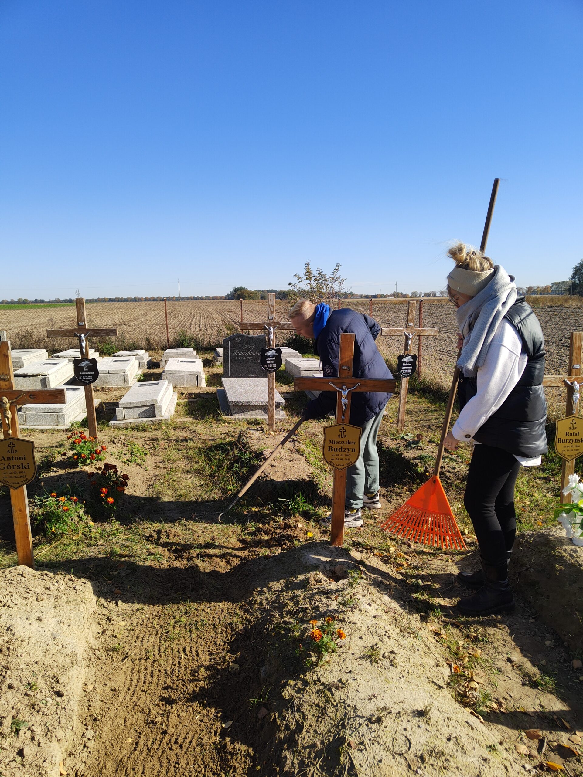 Wrzesień i październik 2025r. to czas intensywnych prac porządkowych na Cmentarzu Parafialnym w Fanianowie, na którym pochowani są mieszkańcy naszego Domu. Obejmowały one m. in.: usuwanie darni ze ścieżek, wyrównanie terenu, ściąganie starych płyt nagrobkowych i przekładanie ich na miejsce istniejących usypanych z ziemi oraz likwidację 38 nagrobków podopiecznych naszej placówki, którzy zmarli w latach `80 i 90 -tych.