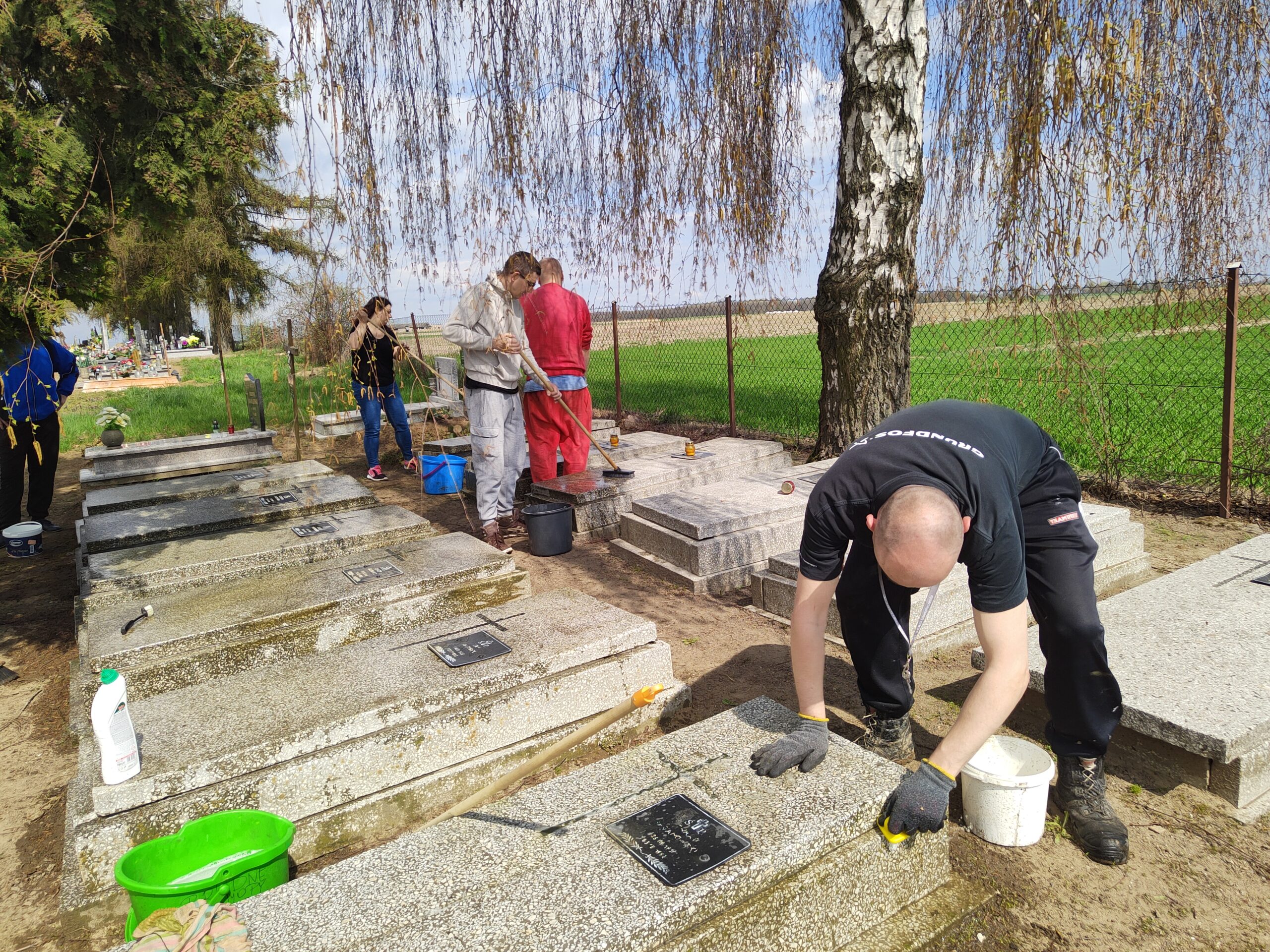 Nie zapomnieliśmy też o nagrobkach założycieli Dębna i fundatorów kaplicy p.w. M. B. Bolesnej w Dębnie – hrabiów Jezierskich. Te groby także zostały umyte i wykonano przy nich szereg zabiegów pielęgnacyjnych.