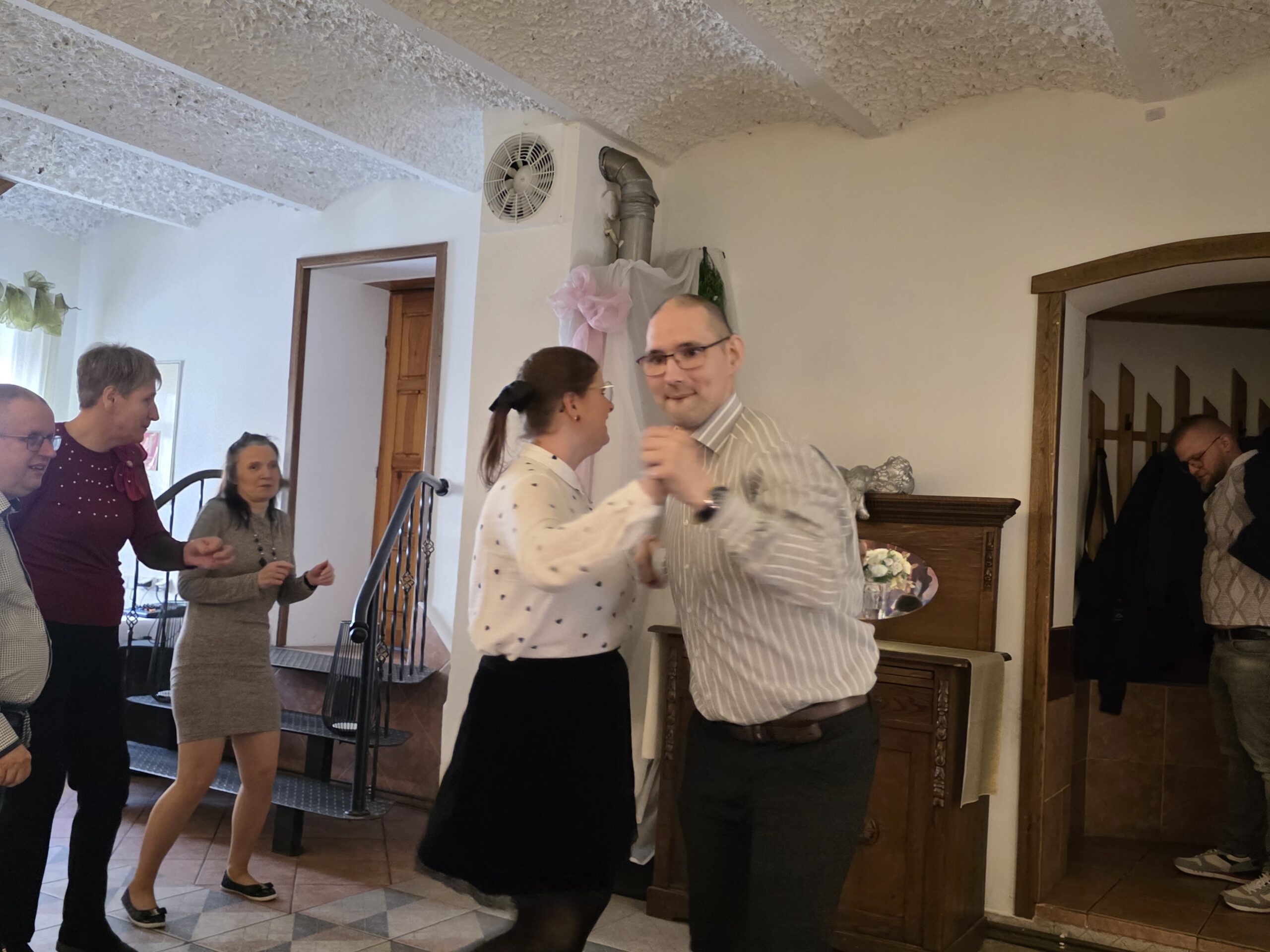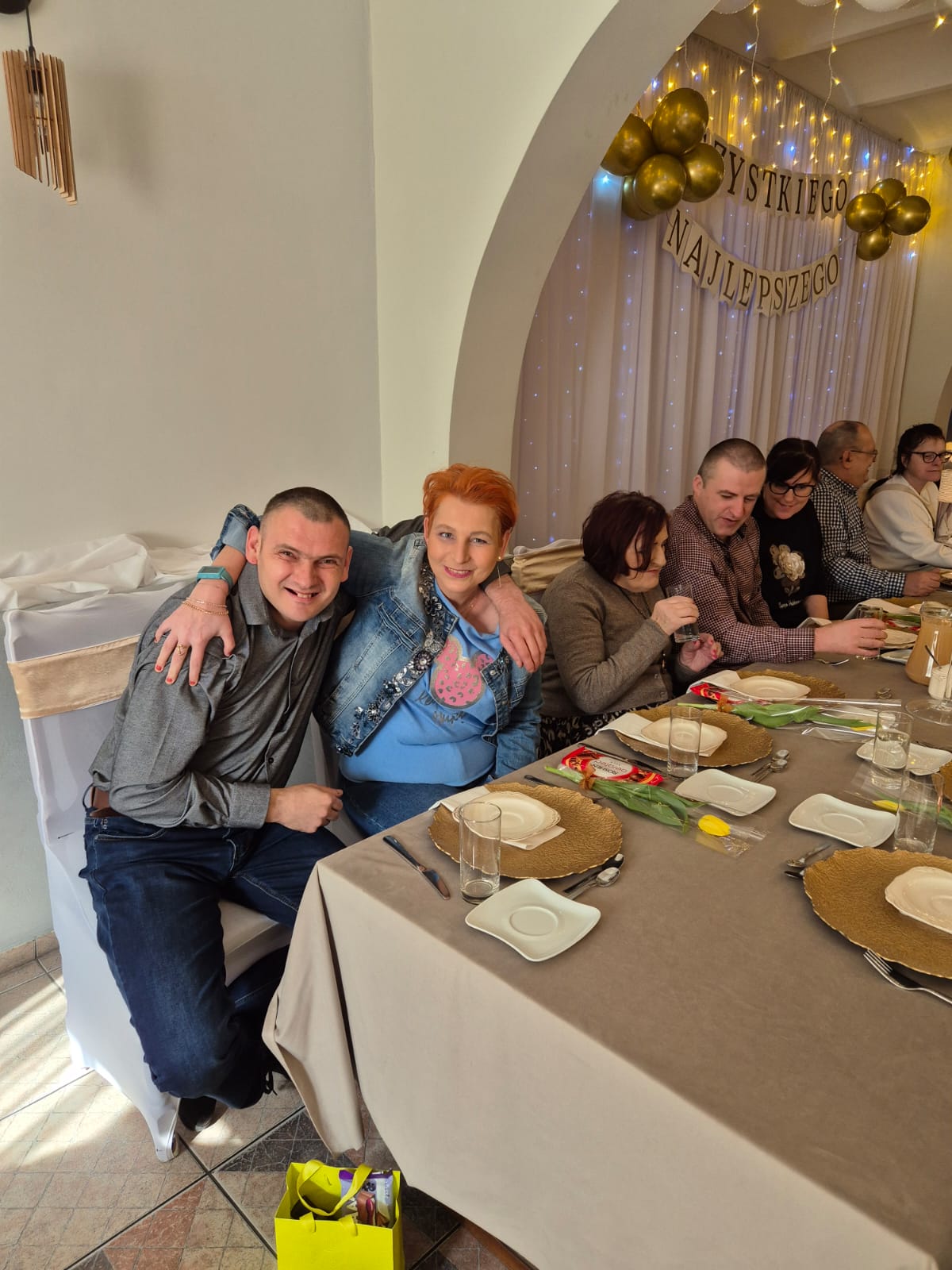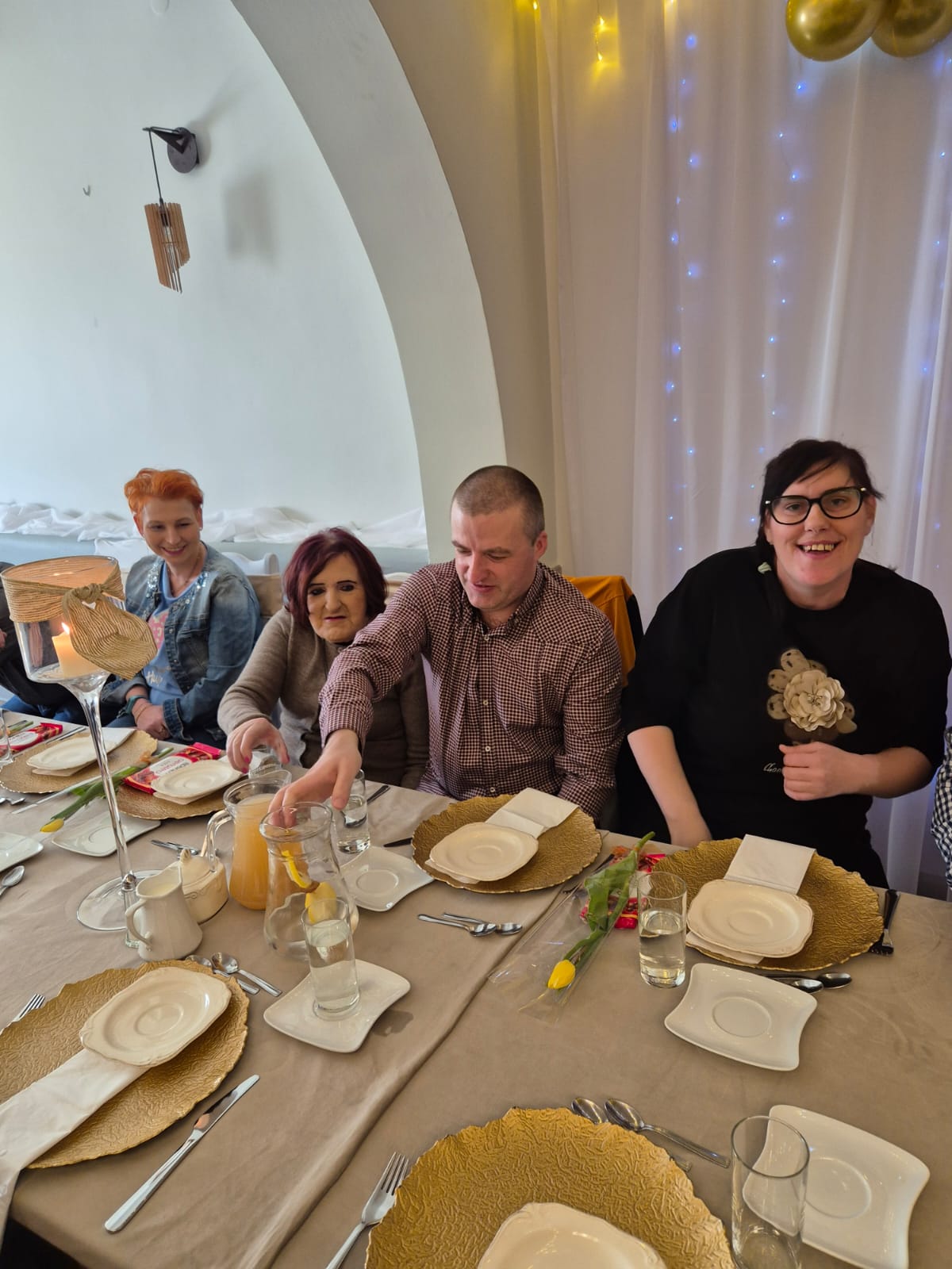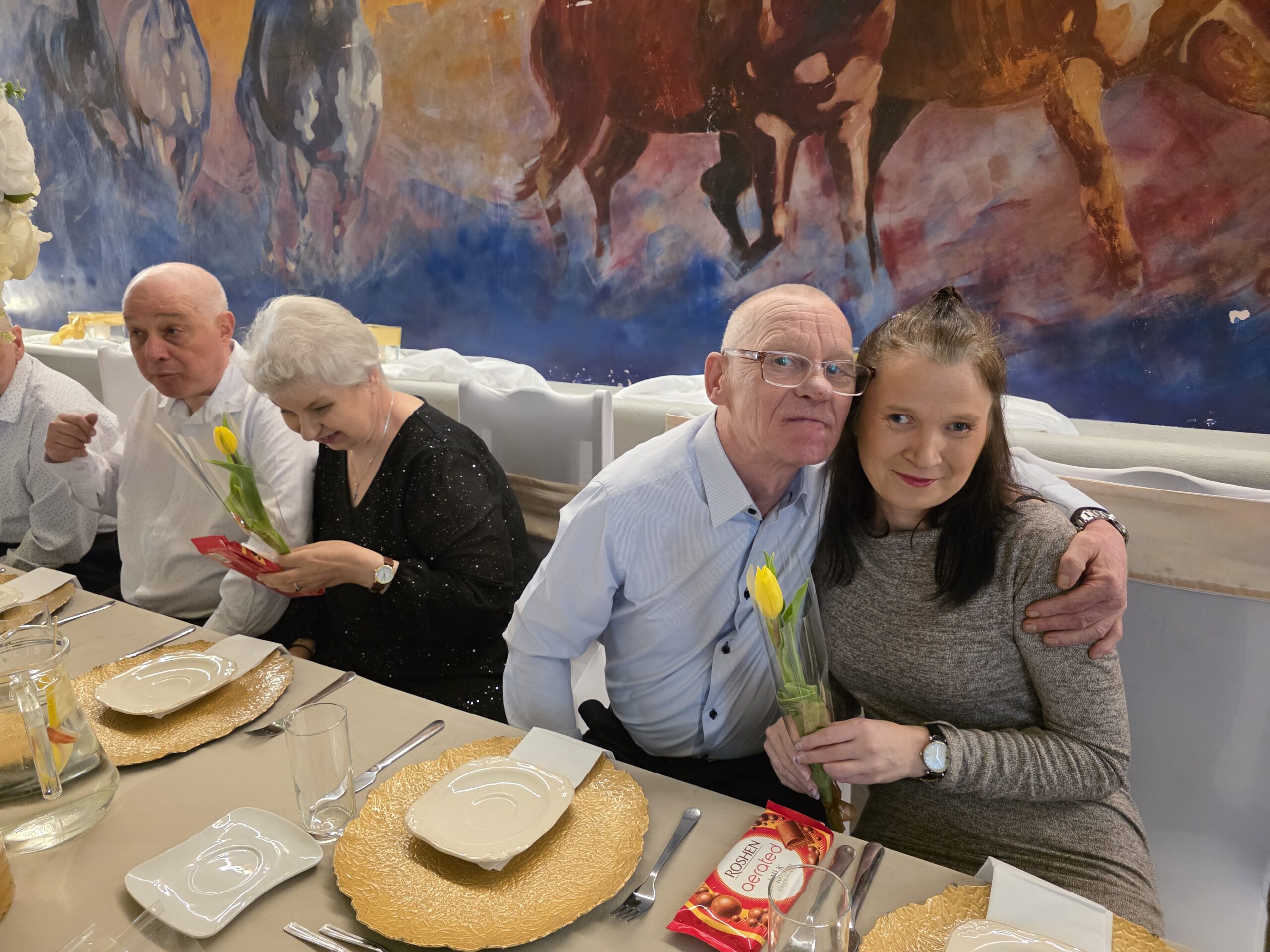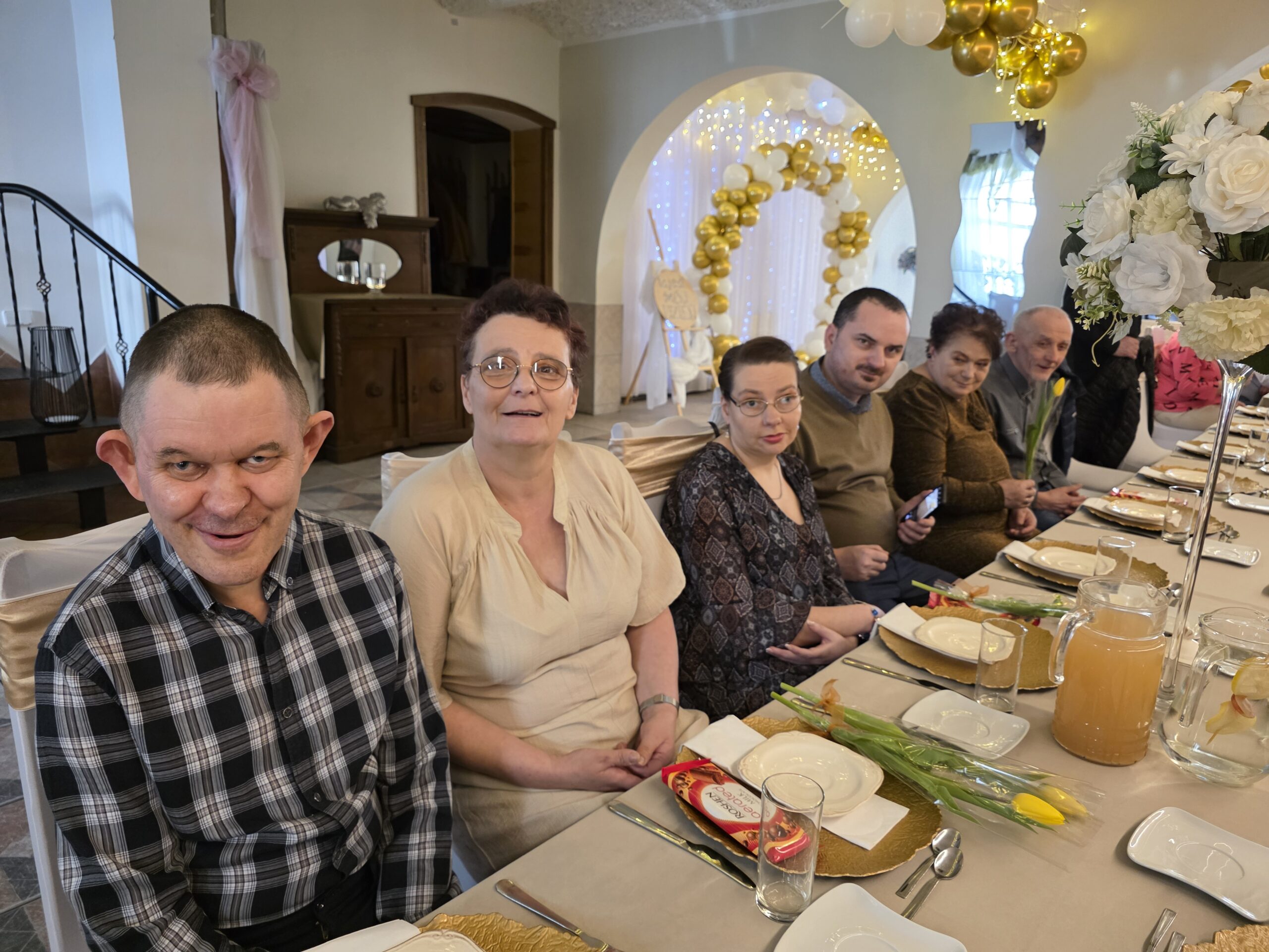 W tym roku spotkanie odbyło się 10 marca w godzinach 11⁰⁰ – 13⁰⁰, a okazją były dwa ważne w naszej kulturze święta: 8 marca Dzień Kobiet oraz 10 marca Dzień Mężczyzny. Tego dnia aż czternastu naszych Panów – mieszkańców –  spotkało się z Paniami. Jak zwykle czekał na nich pięknie przystrojony stół, na którym pojawił się pyszny obiad. Po nim biesiadnikom podano kawę i deser lodowy. Świąteczną atmosferę tworzyła też muzyka. Nikt nawet się nie spodział, kiedy muzyka poderwała wszystkich do tańca. Pary ruszyły na parkiet i pięknie się bawiły.