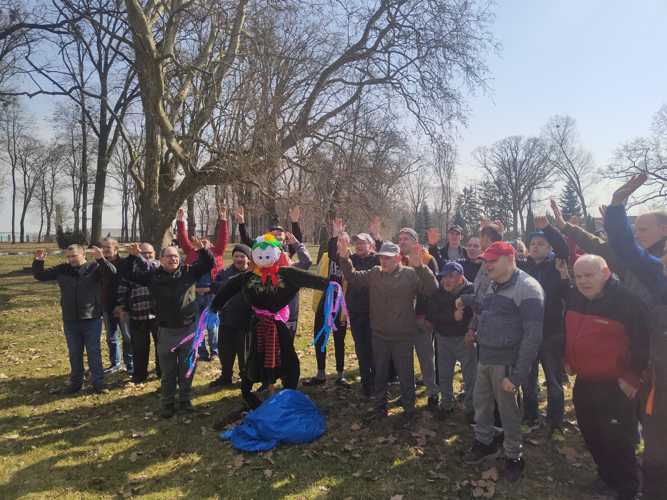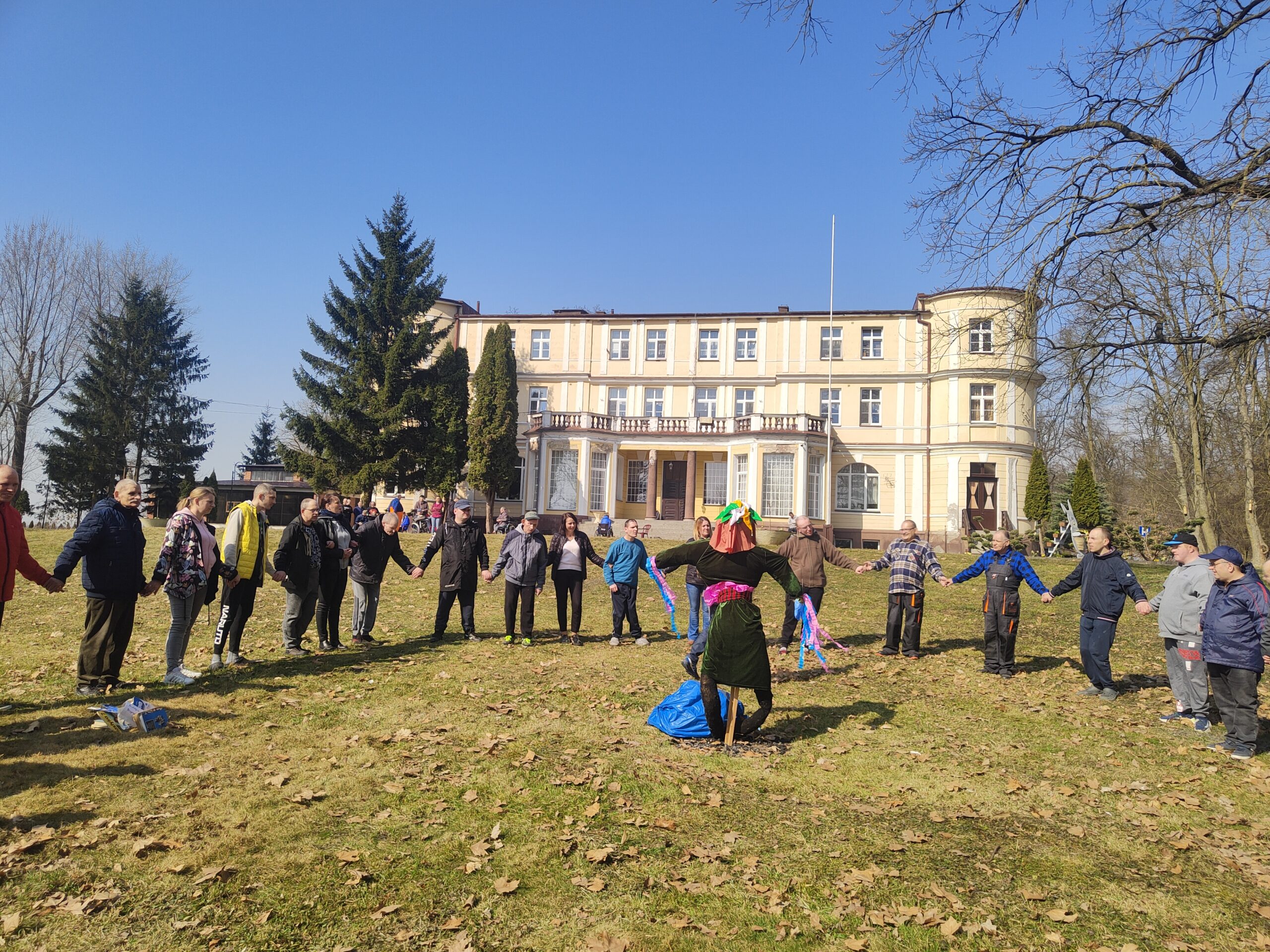 Tego dnia bardzo liczna grupa mieszkańców wraz z opiekunami, terapeutami i pedagogami uczestniczyła w zajęciach na świeżym powietrzu, podczas których wszyscy żegnali długą i mroźną zimę i  witali wiosnę. W trakcie obrzędu mieszkańcy recytowali wiersze i śpiewali piosenki z czasów  dzieciństwa. Wszyscy bawili się wyśmienicie.